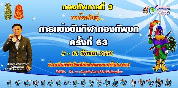 กำหนดการแข่งขันกีฬากองทัพบก ปีนี้ ครั้งที่ 63 / 2556 จว.พิษณุโลก ( ณ ค่ายเอกาทศรถ ) กองทัพภาคที่ 3