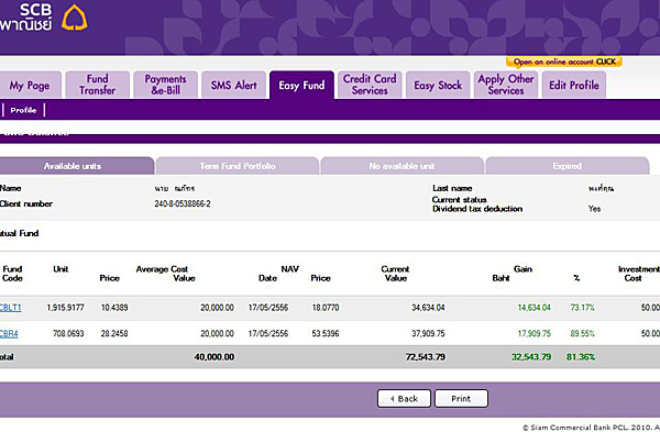 อันนี้เป็นตัวอย่างของผมที่เป็นมนุษย์เงินเดือน ใช้LTF,RMF เพื่อช่วยลดหย่อนภาษี และเก็บระยะยาว ผลตอบแทนไม่หวือหวา เหมือนเล่นพระ แต่แน่นอนครับ ขึ้นอย่างเดียว ตอนแก่จะได้มีไว้เสพสุข ลองดูนะครับ แต่ละสถาบันการเงินก็คล้ายๆกันครับผม ใครอายุน้อยหน่อยก็เลือกความเสี่ยงมากหน่อยก็ได้ครับ ขอให้รวยๆๆๆทุกคนครับ  |