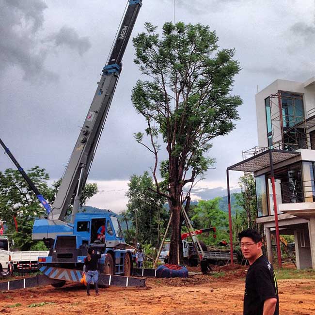 ไม่รู้ว่าเฮียสรยุทธ เอาเวลาที่ไหนไปปลูกบ้าน ไปหาต้นไม้มาลง แต่ถ้าเสร็จแล้วน่าจะอลังการมาก ข้างหลังเห็นภูเขาด้วย ... ฮวงจุ้ยเลิศ จริงๆๆ  |