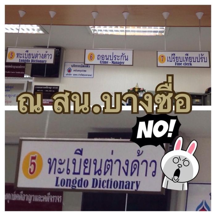 ณ สน. บางซื่อ เดี๊ยนไปจ่ายค่าปรับ เมื่อได้เห็นป้ายเหล่านี้ วิญญาณอาจารย์เข้าสิง และได้บอกว่าคุณพี่ตำรวจคะ แลกกันมั้ย เด๋วแปลป้ายให้ อย่าปรับเลย เค้าก็บอกว่าป้ายมันไม่ได้เป็นอะไรนี่ (หรอ?!?) อ่ะปรับก็ปรับ เสร็จก็ยังแอบทนไม่ไหว บอกไปอีกว่า คุณพี่แน่ใจหรอคะว่าพี่จะปล่อยป้ายไปแบบนี้ เค้าก็บอกว่า คุณอย่ามายุ่งกับป้ายเลย เด๋วสารวัตรว่า Okie welcome Thailand to AEC! ขอไว้อาลัยเบาๆ หนึ่งที |