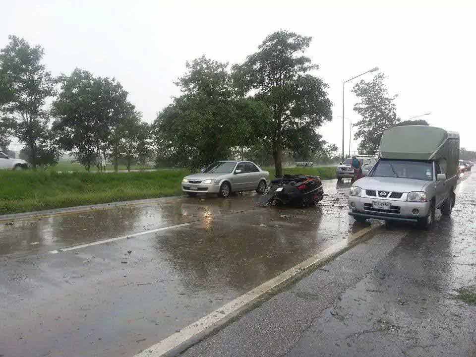 จากนั้นจึงเดินทางต่อมายัง จ.พิษณุโลก จนมาถึงที่เกิดเหตุในช่วงที่ฝนตกลงมาอย่างหนัก ถนนลื่น ประกอบกับขับรถมาด้วยความเร็วสูงกว่า 150 กม./ชม. จนเป็นเหตุให้รถเสียหลักพุ่งชนกับต้นไม้ข้างทางอย่างจัง ทำให้รถคันดังกล่าวขาดครึ่งเป็น 2 ท่อน แต่ตัวคนขับไม่ได้รับบาดเจ็บแต่อย่างใด ทั้งนี้ เจ้าหน้าที่ได้ประสานรถยกเพื่อเคลียร์พื้นที่เพื่อเปิดเส้นทางดังกล่าวแล้ว และจะหาสาเหตุที่แท้จริงต่อไป
