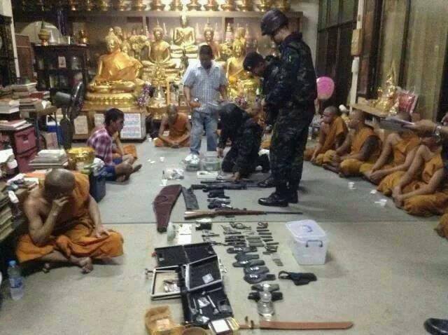 วันจันทร์ที่ 25 ส.ค. 57 ทหารจากกองพันทหารราบที่ 21 รักษาพระองค์ และ ตำรวจภูธรบ่อวิน สนธิกำลังบุกตรวจค้น วัดห้วยปราบ หมู่ 3 ต.บ่อวิน อ.ศรีราชา จ.ชลบุรี หลังจากมีชาวบ้านทำหนังสือร้องเรียน จนท.จึงได้สนธิกำลังกันตรวจค้น