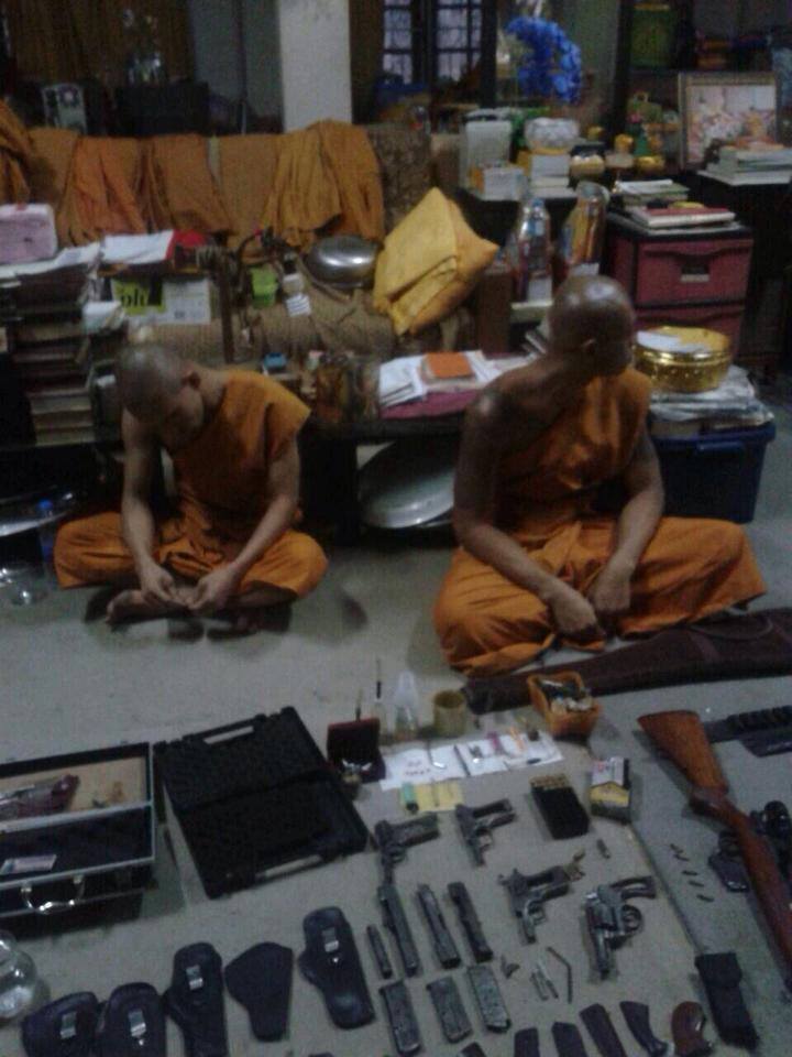 สำหรับวัดห้วยปราบ มีพระและเณรรวมกัน 21 รูป จากการตรวจปัสสาวะเพื่อหาสารเสพติดพบ 2 ราย คือ นาย สิทธศักดิ์ ศรีบุญ คนขับรถวัด และพระยุทธนา พร้อมของกลาง ยาบ้า 5 เม็ด ค้นตามห้องต่างเจออาวุธมีด 14 เล่ม ปืนบีบีกันหลายกระบอกและอาวุธปืนไทยประดิษฐ์ ขนาด 38 และ ปืนยาว 22 พร้อมเครื่องกระสุน 45 รวม 14 นัด กระสุน 38 รวม 4 นัด
