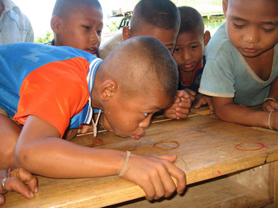 ไม่ว่าจะเป็นหยอดหลุม ที่ใช้หนังยางวงทอย (โยน) ให้เข้าด่อน (ไม้ที่ปักโด่เหนือพื้นดินมาเล็กน้อย แล้วใช้สตางค์แดง (ตังค์รู) ทอย กินหนังยางเป็นตัววัดฝีมือ