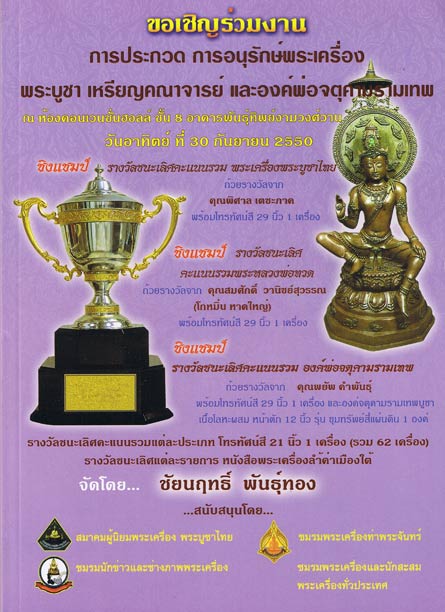 | หัวข้อกระทู้ : เชิญชมรายการพระ+รายละเอียดงานประกวดที่พันธุ์ทิพย์งามฯ30/9/50 ครับผม :-) |