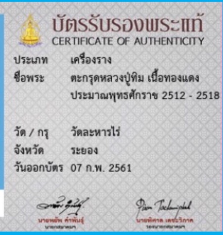 สอบถามหน่อยสิครับว่า บัตรรับรองพระแท้ที่ออกโดยสมาคมผู้นิยมพระเครื่องพระบูชาไทย ที่ออกโดยมีลายเซ็นต์นายพยัพ คำพันธุ์ ในบัตรแข็งตามรูป จะต้องมีชื่อเจ้าของพระหรือไม่ครับ เพราะบางบัตรเห็นมี บางบัตรไม่มี ระยะเวลาที่ออกบัตรก็ใกล้เคียงกัน เลยอยากรู้ว่าจริงๆว่าต้องมีชื่อเจ้าของหรือไม่ครับ ขอดูบัตรเพื่อนๆหน่อยครับ(ขออนุญาตยกตัวอย่างบัตรของเพื่อนสมาชิกนะครับ) |