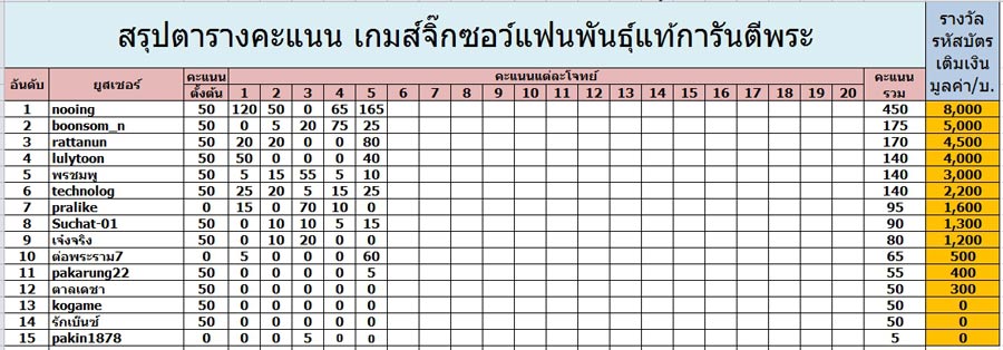 ผมได้อธิบายไว้ในกติกาแล้ว ว่าจะคิดคะแนนจากผู้ที่ได้ก่อน