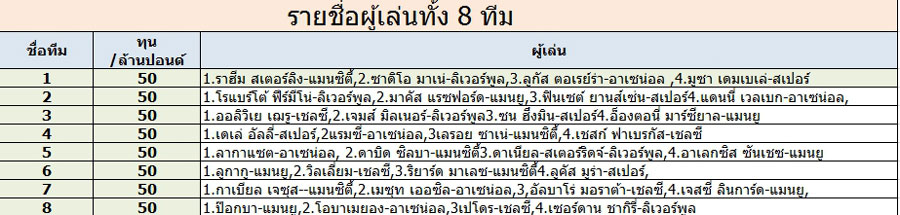 เงินทุนตั้งต้นแต่ละทีม 50 ล้านปอนด์