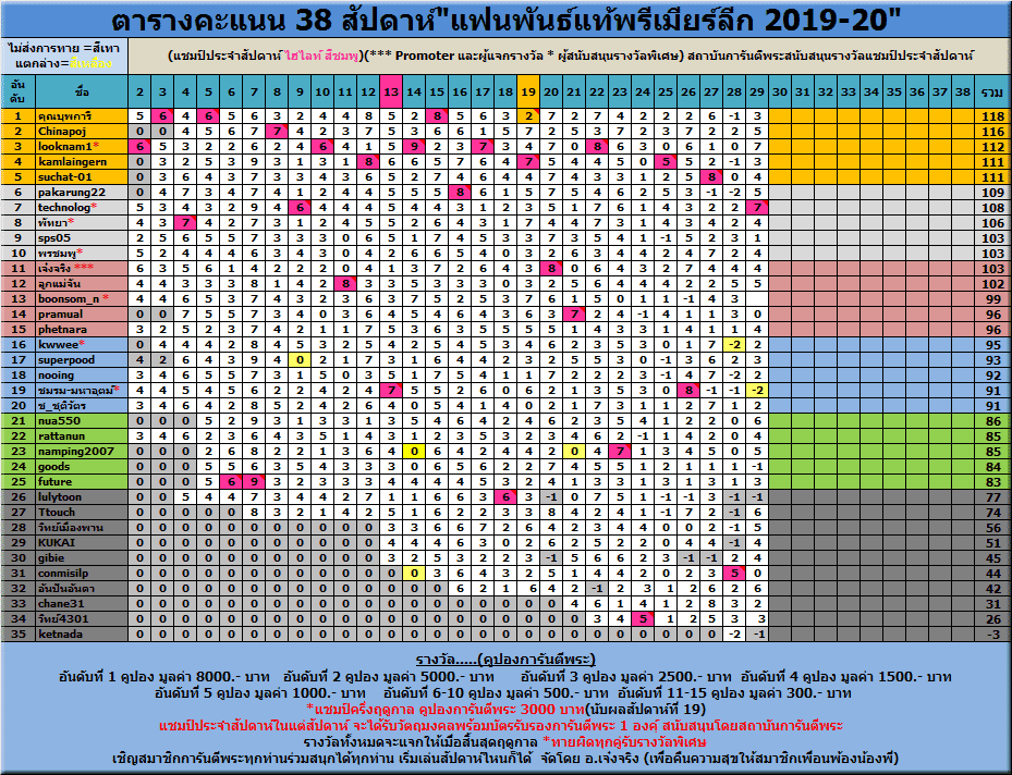 สิ้นสุดสัปดาห์ที่ 29 ใครได้คะแนนเท่าไรดูได้เลยครับ