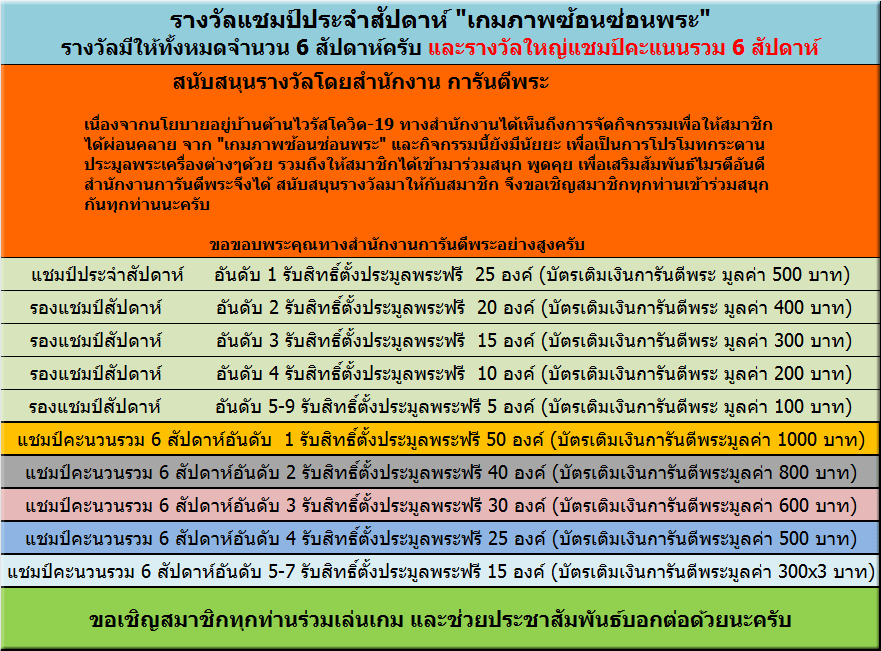 | หัวข้อกระทู้ : "เกมภาพซ้อนซ่อนพระ"ภาพที่ 2/3 :สนับสนุนรางวัลโดย บ.การันตีพระ (อยู่บ้านต้านภัยโควิด-19) |