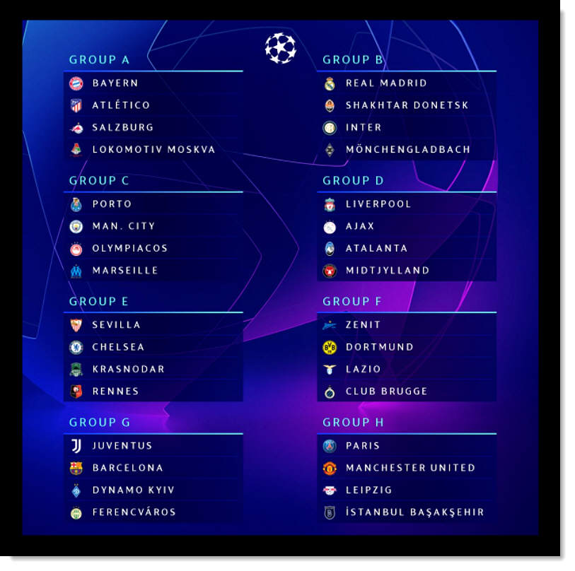 #ฟุตบอลยูฟ่าแชมเปี้ยนลีก2020 รอบแบ่งกลุ่มนัดแรก 20-22 ต.ค.63