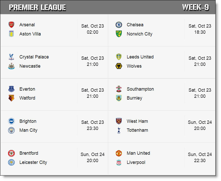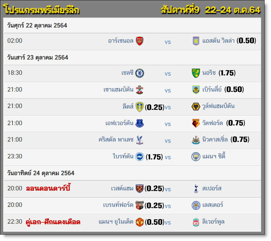 +พรีวิวโปรแกรมพรีเมียร์ลีก-วีค9 23-24ต.ค.64 บิ๊กแมชต์แดงเดือด! พร้อมประเมินอัตราต่อรองล่วงหน้า!
