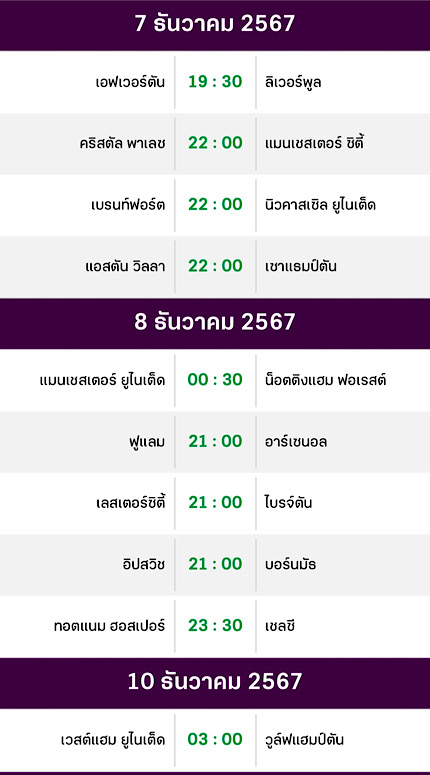 - คู่ที่ 1 เริ่มแข่งขันเวลา 19.30 น. วันที่ 7/12/67