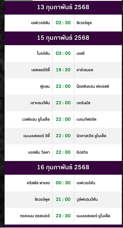 - คู่ที่ 1 เริ่มแข่งขันเวลา 02.30 น. วันที่ 13/2/68 ( คืนวันพุธ )