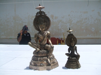 องค์พ่อจตุคามฯรามเทพรุ่นขุมทรัพย์สี่แผ่นดินมีกำหนดพิธีสุดท้ายในวันที่ 10 ม.ค. 51 ณ.ศาลหลักเมืองจ.นครศรีฯโดยพิธีสมโภชน์นี้จะจัดพิธีตามแบบพิธีปี 30 ทำพิธีโดย คุณฉันทิพย์ พันธรักษ์ราชเดช (คุณเล็ก)และในพิธีจะมีการสร้างพระพิมพ์กดมือโดยจะมีทั้งหมดสี่สีคือ ขาว,เหลือง,ฟ้าและชมพูโดยทุกองค์จะฝังเม็ดยาและจะมีพระพิมพ์กดมือฝังตะกรุดทอง,นากและเงิน สำหรับมวลสารส่วนหนึ่งนั้นได้รับมอบจากคุณเล็กและผสมผสานกับมวลสารของขุมทรัพย์สี่แผ่นดินซึ่งประกอบด้วยผงสมเด็จฯ,ผงตะไบพระกริ่งอีกหลายรุ่นเช่นผงตะไบกริ่งปวเรศและมวลสารอื่นๆอีกมากมายจึงกราบเรียนและแจ้งข่าวให้แก่ผู้ที่ศรัทธาองค์พ่อฯทุกท่านครับ |
