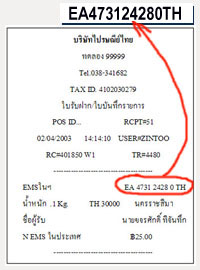 นั้นได้ถูกส่งมาแล้ว โดยไปตรวจสอบกับ web ไปรษณีย์ไทย http://track.thailandpost.co.th/ ลองเข้าไปดูที่ web ก็จะเห็นขั้นตอนต่างๆ อืม..แต่จะใช้ได้กับ