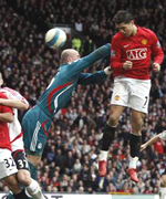 ผ่านไปถึงกลางครึ่งแรก แมนฯยูไนเต็ด น่าได้เหลือเกินเมื่อได้ฟรีคิกทางขวา ไรอัน กิ๊กส์ โยนเข้าไปที่เสาสอง มี คริสเตียโน่ โรนัลโด้ ที่หลุดไปยิงเผาขน บอลชนเสากระดอนออกไปน่าเสียดาย