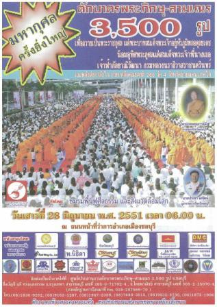 ข่าวดีที่สุดในรอบปี.. ตักบาตรพระ 3, 500 รูป ทำบุญใหญ่จังหวัดชลบุรี 28 มิ.ย. 51