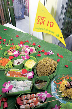 กินเจจึงเป็นผลพลอยได้กับ ร่างกายที่ตามมา จูงใจให้คนสนใจมา บริโภคอาหารเจมากขึ้น ทำให้มีการสร้างเมนูมากมายเพื่อเอาใจคนกินเจโดยเลียนแบบหน้าตาและรสชาติของเนื้อสัตว์ จนเกิดข้อกังขาว่ากินเจแล้วตัดซึ่งกิเลสไม่ได้ |