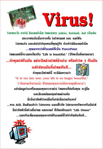 >>>เตือนทุกคน ฟอร์เวิร์ดต่อด้วยนะ Virus ชื่อ kali มัน