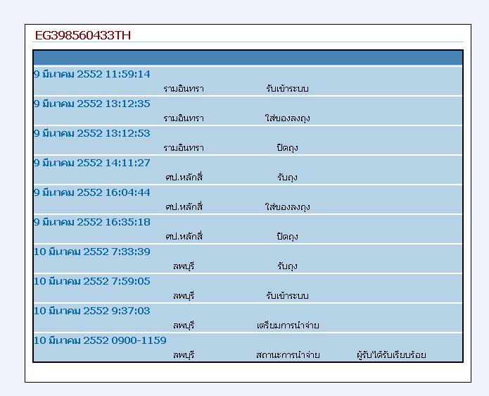 ผมจึงแจ้งทาง G-Pra ให้ส่งพระกลับคืนให้พี่ และทาง G-Pra ได้จัดส่งให้ในวันที่ 9/3/52 และมีผู้รับ ในวันที่ 10/3/52