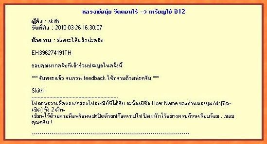 ตอนนี้ --> พระหลวงพ่อมุ่ย เหรียญไข่ ปี 2512 <-- ค้างอยู่ที่ปณ. นครสวรรค์
