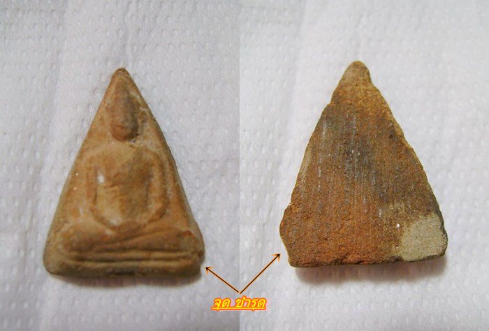 > ภาพ 2..ภาพ ชี้จุดชำรุด เมื่อ แรก เปิดกล่อง ปณ. และเปิด กล่องพระติดรางวัล ที่ 1 และเปิดกระดาษทิชชู่ ก็ เห็นสภาพนี้ แล้ว แต่ไม่พบ เศษ ที่แตกหัก เลยเข้าใจ ว่า คงชำรุด ก่อน แพ็ค เป็นแน่ แท้  |