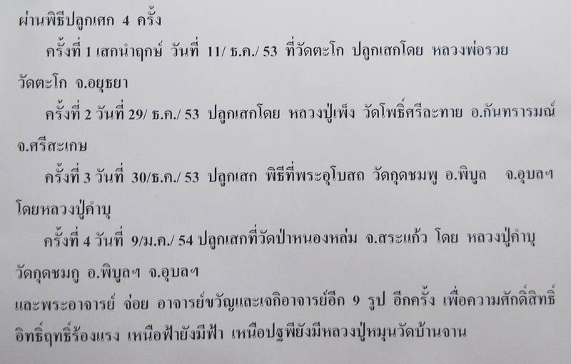 - ครั้งที่ ๒ วันที่ ๒๙/๑๒/๕๓ ณ.วัดโพธิ์ศรีทะลาย โดย หลวงปู่เพ็ง วัดโพธิ์ศรีทะลาย อ.กันทรารมณ์ จ.ศรีสะเกษ