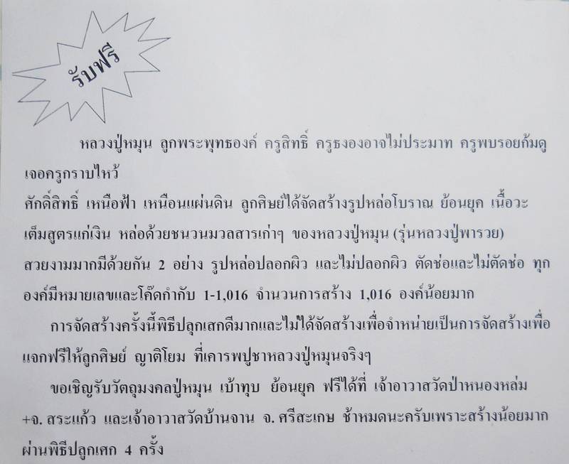 ข่าวดี ข่าวด่วน แจกฟรีรูปหล่อเบ้าทุบ เนื้อนวะโลหะเต็มสูตร หลวงปู่หมุน วัดบ้านจาน