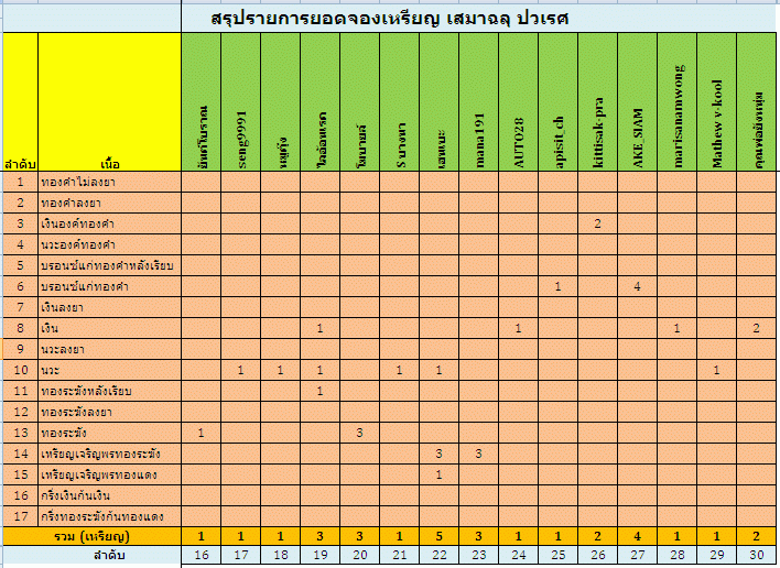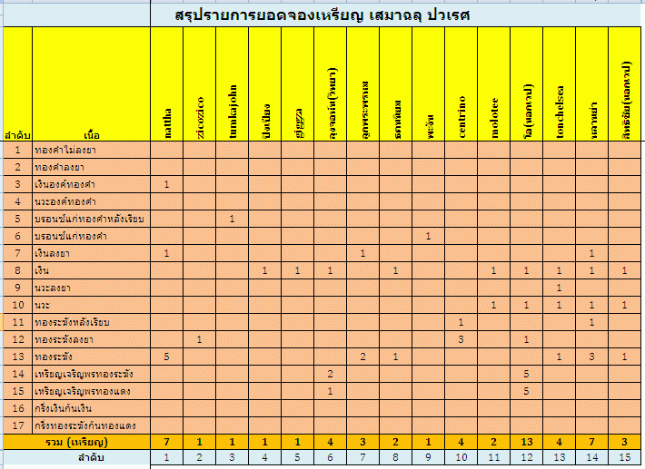 สรุปยอดจองเหรียญ ปวเรศ ที่จองกับคุณซุ่มโคราช