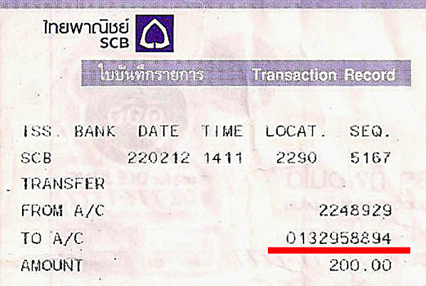 หลักฐานการโอนเงินครับ เชิญตรวจสอบครับ |