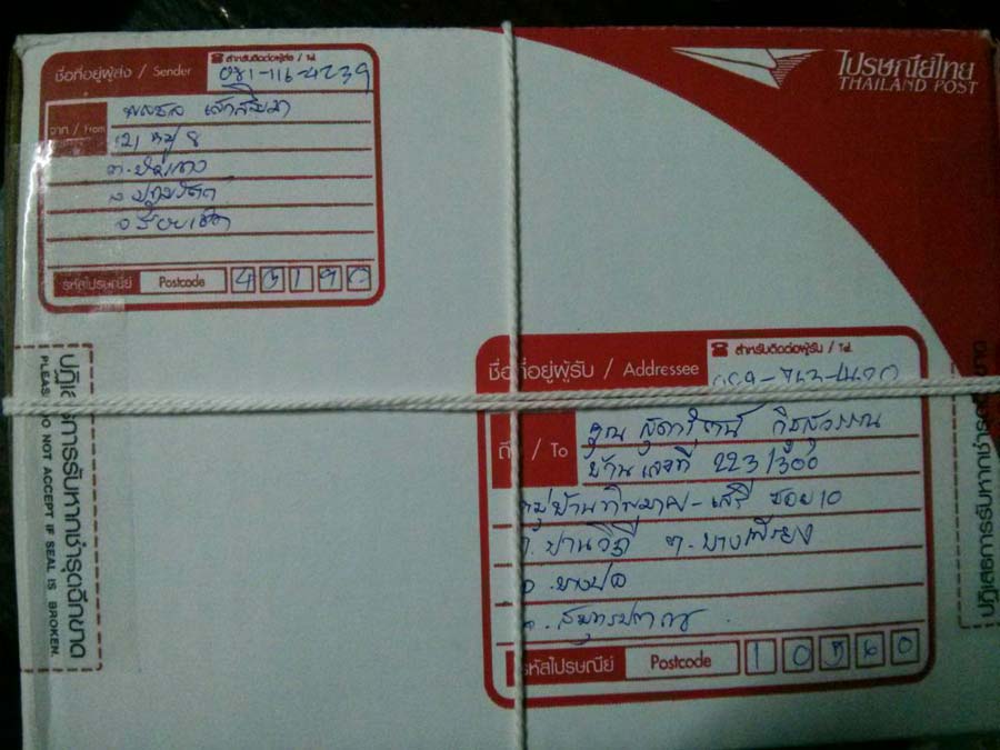 ผมไม่สะดวกเข้าไปรษณีย์เลย ของของพี่ ผมแพกแล้ว รับปากว่าจะส่งวันศุกร์ ก็ไม่ได้ส่ง ผมผิดพลาดเอง