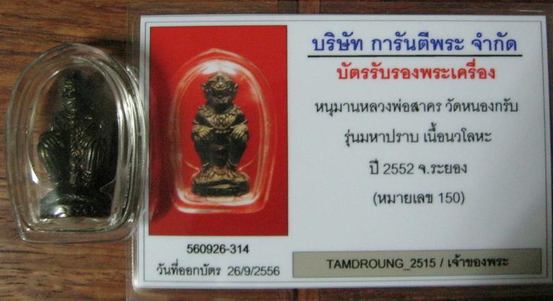 เนื่องจาก หนุมานมหาปราบ หลวงพ่อสาคร วัดหนองกรับ เนื้อนวะ หมายเลข 150 ก้นอุดผง ปัจจุบันอยู่ที่ผม ตามรูปที่ผมลงมาด้วย