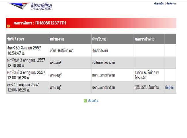 ข้อความ : ส่งคืนแล้วครับ RH808612371TH ผมลืมส่งใบรายงานผลของเวปU