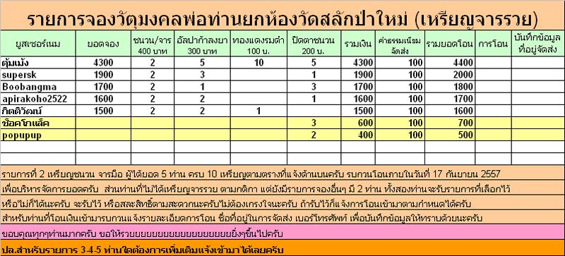 ผู้ที่ได้ยอดจองตามรายการที่ผมแจ้งไว้ครับ
