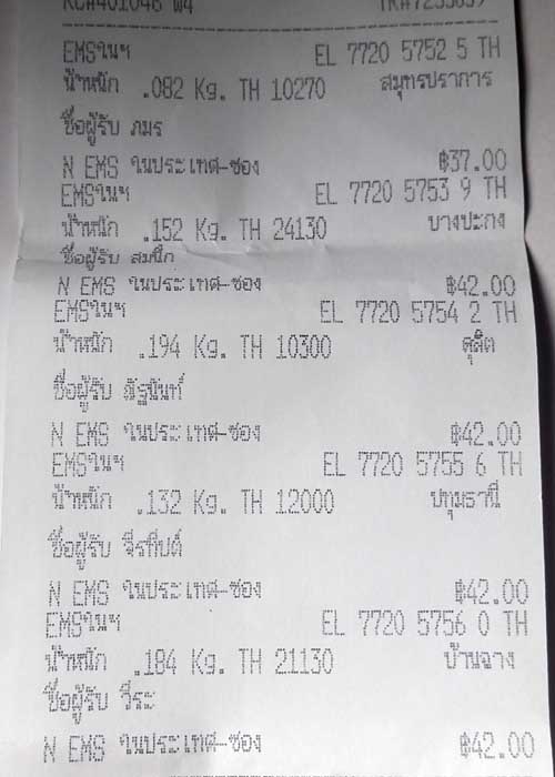 | หัวข้อกระทู้ : แจ้งเลขEMSส่งตะกรุดดับเดือนดับตะวันฯของพี่ๆที่จองกับ Singh_Amulet ครับ (รอบที่2) |