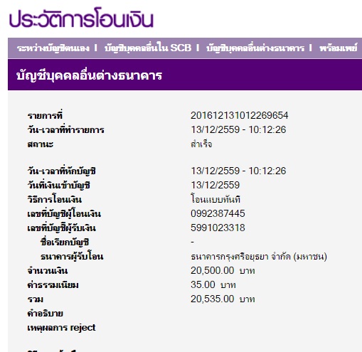 ตามที่ได้คุยกันไว้ครับ กับการจองเหรียญนั่งพานหลวงพ่อสิน ออกวัดบ้านคลอง เนื้อทองแดงทั้ง 2 พิมพ์ๆ ละ 100 เหรียญๆ ละ 100 บาท + ค่าส่งอีก 500 บาท รวมเป็นเงินทั้งสิ้น 20,500 บาท และปัจจุบันซึ่งพระชุดนี้ได้ออกมาซักระยะหนึ่งแล้ว และผมยังไม่ได้รับพระตามรายการที่ได้จองไว้ จึงขอส่งหลักฐานที่พอจะหาได้เป็นการยืนยันว่าผมได้ทำการจองไว้จริงๆ มาให้พี่ดูครับ การคุยกันในครั้งนั้นอาจจะเป็นการคุยกันใน Inbox ปัจจุบันผมยังหาข้อมูลตัวอักษรที่เราคุยกันไว้ไม่ได้ มีก็แต่หลักฐานการโอนเงินเพียงเท่านั้นครับ ขอบคุณครับ |