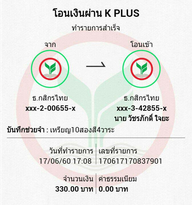 RE : RE : RE : โอนให้แล้ว330บาท17/6/60เวลา17.08 ส่งที่อยู่ตามเวป ขอบคุณครับ