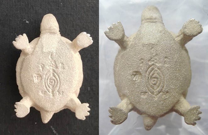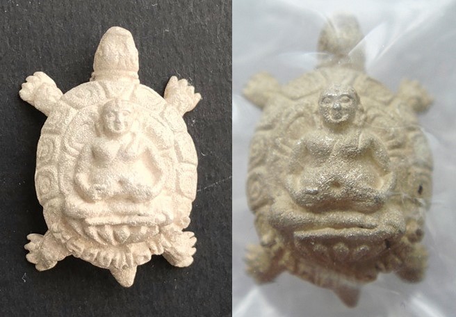 แต่องค์จริงที่ผมได้รับมามีรอยดำ ถ่ายด้วยกล้องคนละตัวถึงสองครั้ง ก็เห็นรอยดำชัดเจนครับ อันนี้ผมยังไม่ได้แกะออกจากซองแก้วนะครับ |