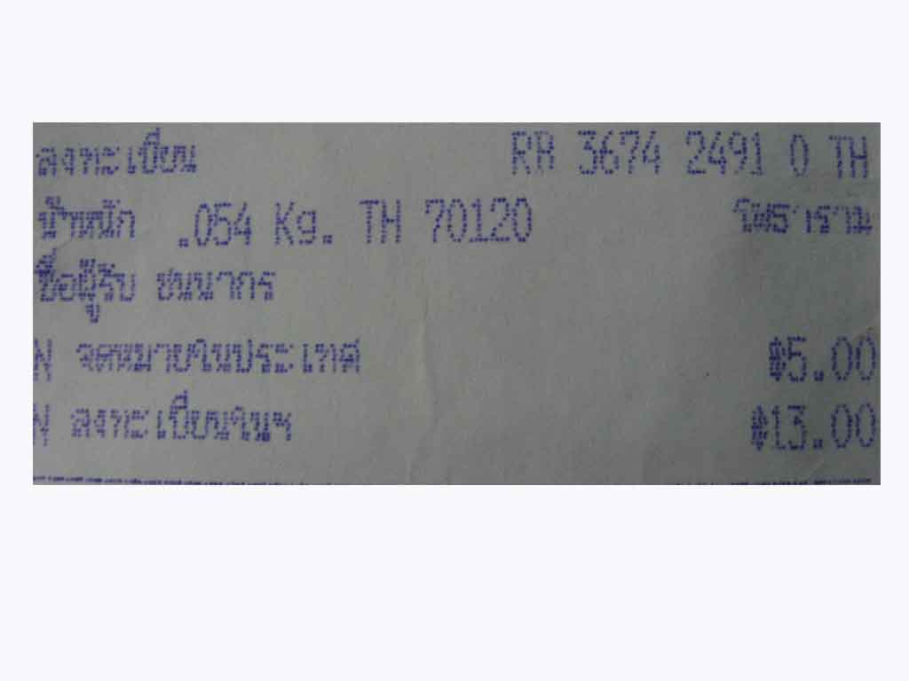เมื่อวันพฤหัสที่ 23 พ.ย.คุณ ธนกร ได้ประมูลพระผมไป 3 รายการ และโอนเงินให้เรียบร้อย ผมขอจัดส่งพระให้วัน เสาร์ที่ 25 พ.ย. เนื่องจากงานผมหยุดวันเสาร์ แต่ผมพลาดที่จัดส่งให้ในระบบลงทะเบียน เนื่องจากเคยส่งอยู่เป็นประจำ หากราคา 1000 บาทขึ้นไปจะส่งทาง EMS ส่วนลงทะเบียนจะถึงผู้รับก็ไม่เกินวันอังคาร และสามารถตรวจสอบได้ทางระบบไปรษณีย์ไทยใน internet แต่ครั้งนี้ วันศุกร์ที่ 1 แล้วพระยังไม่ถึงคุณ ธนกร เลย ผมได้ตรวจสอบทาง internet ก็แค่รับเข้าระบบ และไม่มีรายการอื่นใดอีก ผมจึงโทรถามไปรษณีย์ต้นทาง(035-251233) และให้ข้อมูลกับผมว่าออกจากระบบและถึงปลายทางที่โพธารามแล้ว ผมจึงโทรถามไปรษณีย์ปลายทาง(032-231522) ก็บอกว่ายังไม่มีพัสดุมา ผมก็โทรไปที่สายด่วน 1545 หลักสี่ แจ้งว่าจริงๆแล้วพัสดุลงทะเบียนจัดอยู่ในระบบมาตรฐาน จะส่งถึงภายใน 3-5 วัน และผมถามว่าเกิดเหตุการอย่างนี้ผมต้องทำอย่างไรบ้าง ได้คำตอบว่าให้ยื่นคำร้องสอบสวนที่ไปรษณีย์ต้นทาง ซึ่งผมก็ไม่ได้ถามต่อว่าหากยื่นแล้วจะดำเนินการติดตามของได้หรือไม่อย่างไร