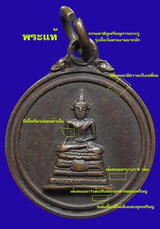 ผมทำแบบนี้จะได้หมดข้อสงสัยกันไปเลยครับ รูปที่นำมาบางรูปจากหนังสือเล่มใหญ่ของวัด บางรูปอาจเป็นเหรียญของพวกท่านเองต้องขอประทานโทษที่นำมาเป็นตัวอย่าง เพราะจากที่ค้นคว้า และสอบถาม จากท่านพระผู้ใหญ่ที่ทันปลุกเสก และคนเก่าแก่แถววัด เหรียญกลมเล็ก นี้ มีออกมา แค่ 2 เนื้อเท่านั้นครับ คือ