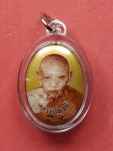 ล็อกเก็ตฉากทอง พิมพ์กลาง รุ่นโชคลาภมหาเศรษฐี ปี 2546 หลวงปู่หงษ์ วัดเพชรบุรี ปี 2546 ด้านหลังฝังตะกรุด 3 กษัตริย์ พลอย จีวร และ เกศาหลวงปู่หงษ์