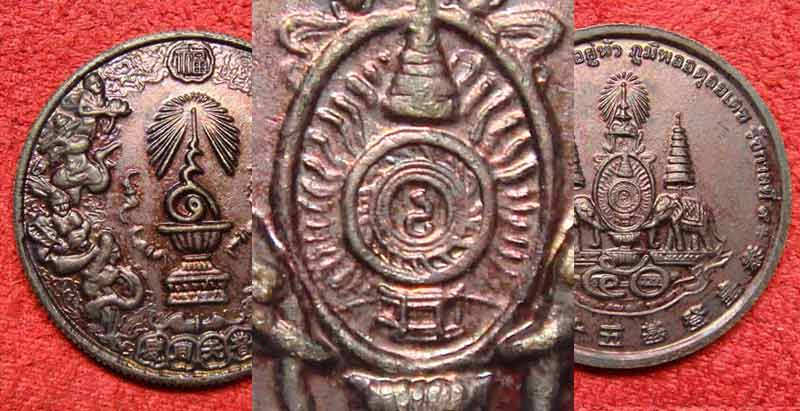 ..... ธนาคารกรุงเทพจัดให้เช่าบูชาในราคา 50 บาท จำนวนสร้างทั้งหมด 1,000,000 เหรียญไม่หักค่าใช้จ่าย รวมเงินได้ 50 ล้านบาททูลเกล้าในหลวง นับเป็นเหรียญที่มีพิธีปลุกเสกหมู่ใหญ่มาก ที่ท้องสนามหลวงได้นิมนต์พระสงฆ์รวม 108 รูปมีพระเกจิดังมากมายรวมทั้งพระสายอีสาน ได้โยงสายสินธ์จากวัดพระแก้วมาที่ท้องสนามหลวง.....