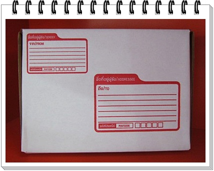 กล่องไปรษณีย์สีขาวเหมือนกับที่ไปรษณีย์จำหน่ายใบละ 9บาท 12บาท แต่ของผมไม่มีเชือกกับเทปกาวเท่านั้นแหละ