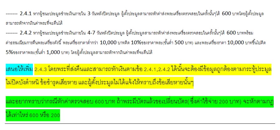 2.4 จำเป็นมากครับที่ต้องกำหนดเพราะอาจมาถกเถียงกันได้อีกว่าผู้ประมูลยังไม่ได้รับ ญาติหรือใครๆมารับ เพราะกฏบอกว่านับจากวันที่ผู้ชนะประมูลรับ