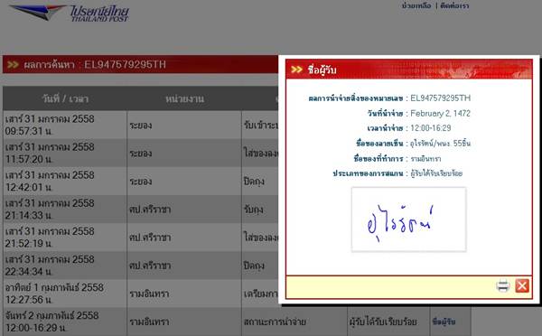 พอดีผมส่งพระไปออกบัตรรับรอง ทางเวปรับพัสดุเมื่อวันที่ 2 กพ. แต่พอมาตรวจดูรายชื่อในผล แจ้งการรับพัสดุไปรษณีย์ EMS ของทางสถาบัน ฯ ประจำวันที่ 3 กุมภาพันธ์ 2558 ( พัสดุถึงสำนักงานการันตีพระวันที่ 2กุมภาพันธ์ 2558 ) กับไม่มีชื่อผมอะครับ ส่งเมล์ไปสอบถามแล้วก็เงียบอะครับ เราต้องทำยังหรือครับ หรือว่ารอจนกว่าผลการออกบัตรจะออกครับ ขอบคุณครับ |