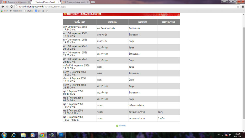 ..เพิ่งเข้าไปตรวจดูการนำส่งเมื่อสักครู่นี้ครับ..เห็นแล้วตกใจ หลายวันเกินไปกว่าจะถึงจุดหมาย..