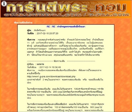 ซึ่งพระผมก็มีบัตรรับรอง และผู้ชนะประมูลได้โทรมาสอบถามและพูดคุยว่ามีคนทักว่าพระไม่แท้ และหลังจากนั้นอีก 1 วันได้เมลล์มาแจ้งขอคืนพระหลังจากที่หมดระยะเวลาในการรับประกันความพอใจตามกฎของเว็บ โดยให้เหตุผลที่ว่า เพื่อนๆที่เคยเล่นสายนี้บอกว่าพระองค์นี้ไม่แท้ ไม่ดี แต่ทั้งนี้ทั้งนั้นผมก็ได้แนะนำให้ลองส่งตรวจสอบกับเว็บดู ถ้าผลออกมาเป็น "พระไม่แท้ผมจะยอมให้คืนพระและโอนเงินคืนเต็มจำนวน" แต่สุดท้ายแล้วก็ไม่ยอมส่งตรวจสอบและมีการให้เหตุผลไม่ค่อยเป็นเหตุเป็นผลเท่าไหร่ ดังข้อความด้านล่างนี้ครับ