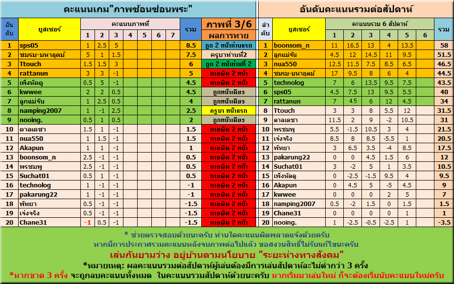 ใกล้ทราบผลกันแล้วครับว่าแชมป์ เกมภาพซ้อนซ่อนพระจะเป็นของท่านใด การแข่งขันยังคงต้องลุ้นกันถึง ภาพสุดท้ายแล้วละครับว่า ใครจะบ๊วย 555 เอ๊ยใครจะแชมป์