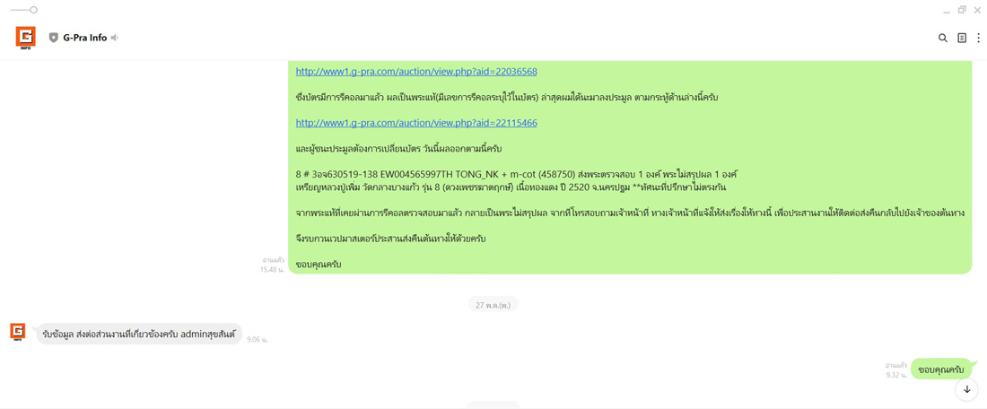 พระผ่านการรีบัตรมาแล้ว2ครั้ง พอครั้งที่3เป็นพระไม่สรุปผล ก็ต้องทำการรีคอลกลับไปยังต้นทาง แต่จนถึงตอนนี้ทำงานถึงไหนไม่เคยแจ้งประสานให้เจ้าของพระทราบ ปล่อยให้รอจนระยะผ่านมา2อาทิตย์ พอสอบถามความคืบหน้าไปก็ไม่เคยได้รับคำตอบ